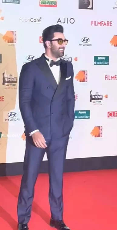 Ranbir Kapoor is one of the most talented actors in Bollywood. The actor has been winning hearts with his tremendous performance in the movie, Animal. For the day, Ranbir kept it classy and opted for a black tuxedo with a bow tie on it.