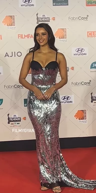 Triptii Dimri has become the 'new national crush' of India after her tremendous performance in the movie, Animal. The diva never shies away from melting our hearts with her beauty. For the 69th Hyundai Filmfare Awards, Triptii opted for a strappy and shimmery bodycon gown, while the upper portion of the bust was in black. The rest came along with a silver tone, giving it a vibrant look. Open hair and a sheen touch of makeup added stars to the diva's look.