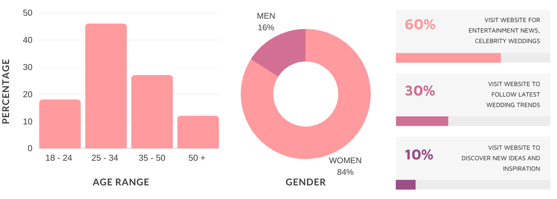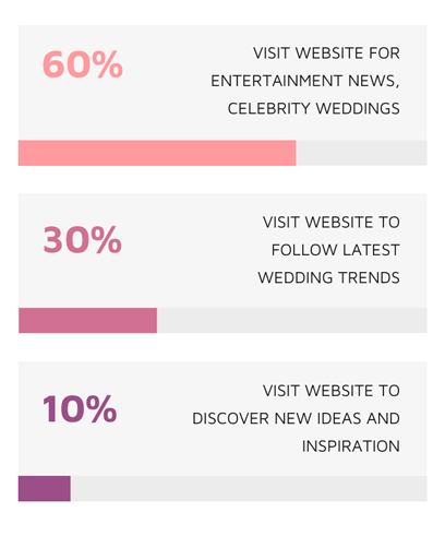 - Interest in celebrity weddings, news, fashion, beauty.