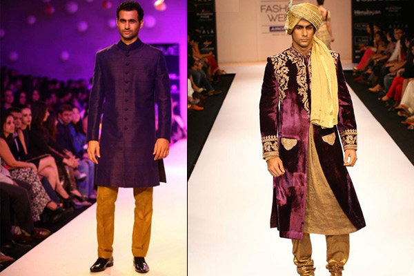 Blue has been a hit among men from quite a long time, and it still maintains that ‘favourite spot’. So, how about playing around with different shades of this colour in one of your wedding outfits? You can wear a royal blue kurta and a churidar, and team it up with a bandhgala jacket in lighter hue. Even reversing the colour scheme in the same outfit will look totally fabulous.