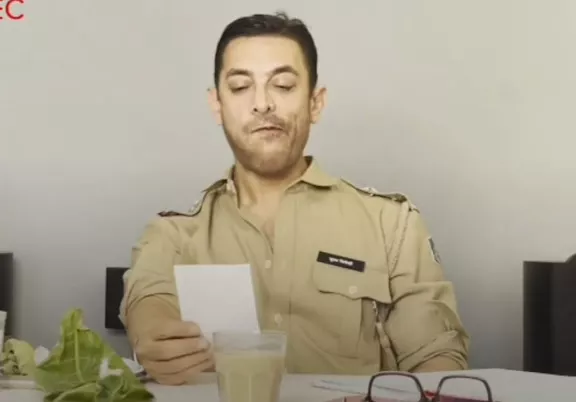 In the video, Aamir Khan can be seen donning a police uniform with slicked-back hair and chewing a paan, the signature style of the character. The actor delivers a few lines from the film. The video also featured some bloopers and was peppered with Aamir's take on 'SI Shyam Manohar's' character, as he introduced different mannerisms and body language into the character.