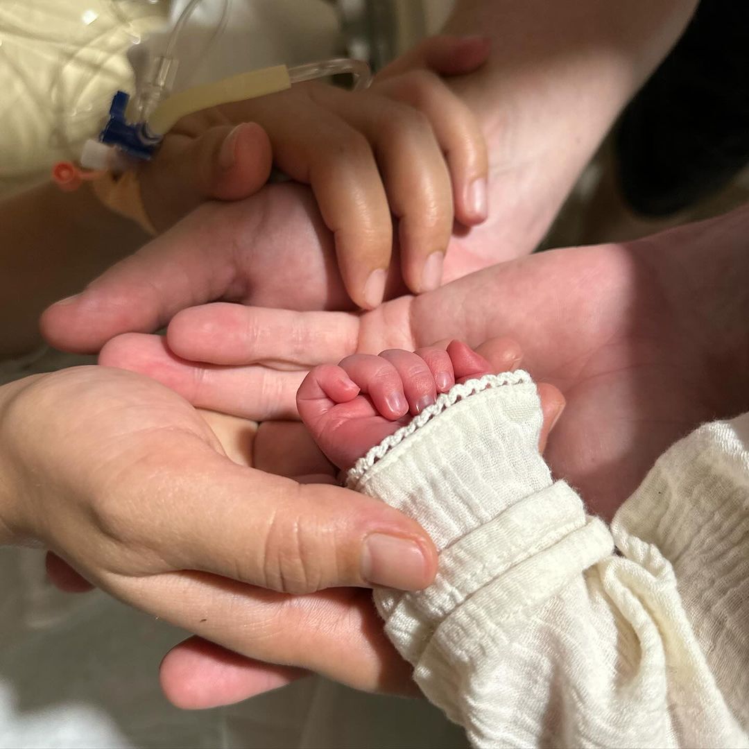 On October 27, 2023, Aashka Goradia delivered a baby boy at 7:45 a.m. Brent took to his Instagram handle and posted a first-ever glimpse of his baby boy from the hospital room. In the picture, we can see Aashka and Brent holding their baby's tiny hand as he was decked up in a soft cream-toned sweater with lacey detailing on the sleeves.