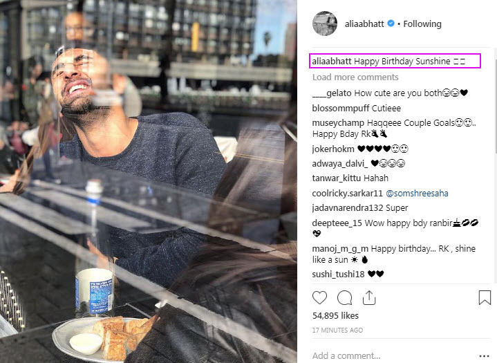 Ranbir Kapoor rang in his 36th birthday yesterday and how! After waiting for long, lady love Alia Bhatt took to Instagram and posted a beautiful solo picture of Ranbir, where his eyes are all closed while letting out a heartfelt laughter. What looks like a picture of a holiday, Alia posted three words which sufficed what he means to her. Sharing the picture, she captioned it as, “Happy Birthday Sunshine”. Here’s the picture: