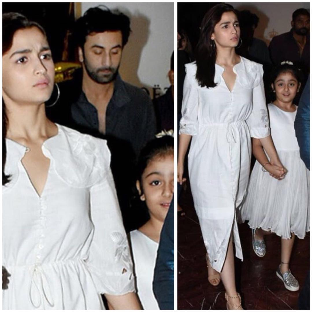 Last weekend, on June 10, 2018, Alia Bhatt went on a dinner date with Ranbir Kapoor and his family, also accompanied by Ranbir’s niece, Samaira. They all went to a five-star high-end eatery in Bandra, Mumbai. And guess what? Alia was spotted outside the place holding not Ranbir’s hand but his little niece, Samaira's. And their twinning and tuning looked really adorable. While Alia wore a white dress, cute Samaira donned a white frock with silver sneakers and looked like a little princess. Ranbir was seen following behind them accompanied by his aunt, Rima Jain. Take a look: