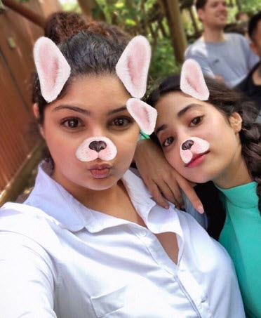 Anshula shared an adorable selfie on her social media handle with Janhvi and this sister duo is seen in matching cat-ears filters. While the big sister, Anshula is dressed in a simple white shirt with her hair tied in a neat bun, little one Janhvi is seen wearing a neon green top and her hair styled in two plaits. Calling Janhvi the glitter to her glue and the axe oil to her headache, Anshula captioned their selfie as, "Feeling the feels for this today!! #TheAxeOilToMyHeadache #GlitterToMyGlue #ILY."