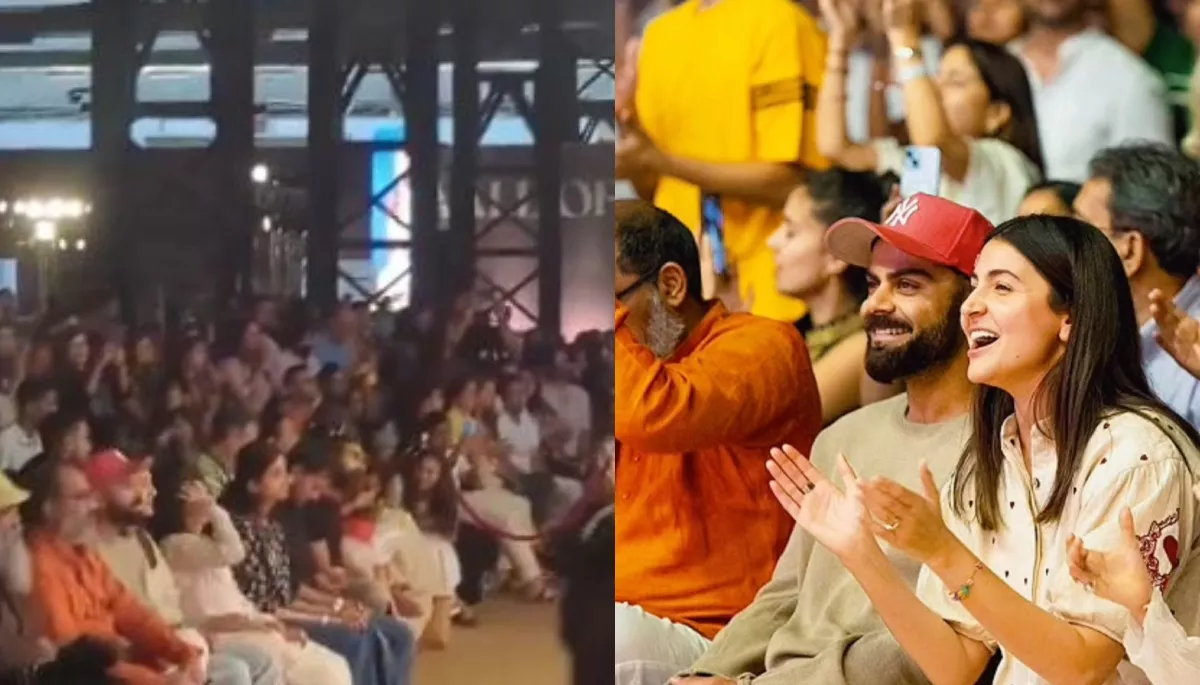 While the nation was celebrating Karwa Chauth, and the suhagans were fasting for the longevity of their husbands' lives, Anushka Sharma and Virat Kohli had a very different kind of Karwa Chauth celebration, which also had a personalised touch. In several photos and videos, which are claimed to be of very recent times, Anushka and Virat could be seen attending Krishna Das' kirtan in Mumbai. For the day, Anushka was decked in a white outfit with red highlights. Virat, on the other hand, looked handsome in a grey t-shirt. The lovebirds could be seen enjoying their hearts out at the event.