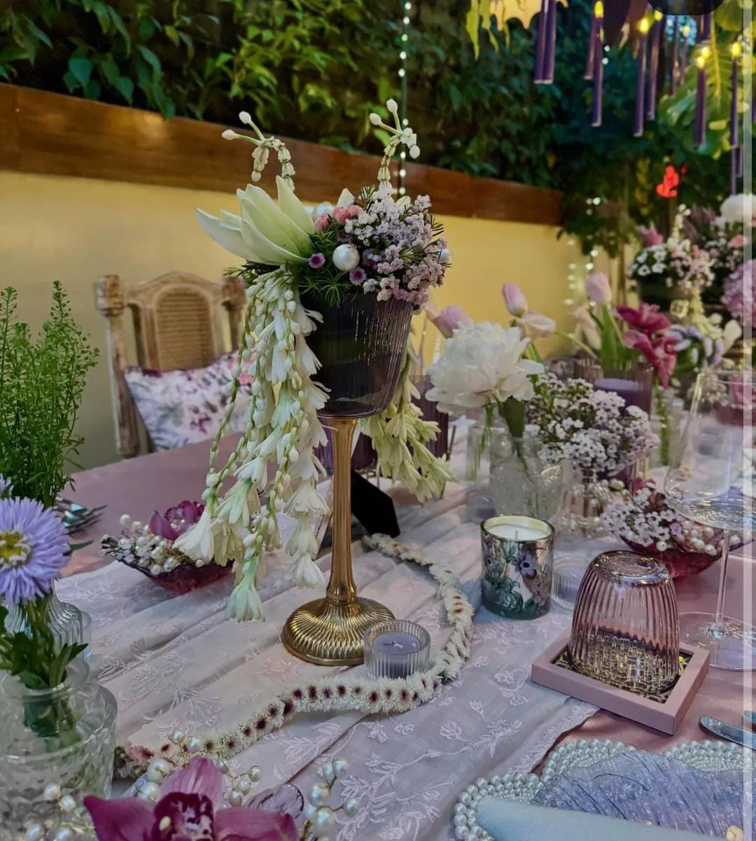 In some other glimpses, the place was seen decked up with fairy lights and pearl-adorned plates, candles, and photo frames with floral imprints, decorated on the table. In one of the photos, we can see some place cards featuring the name inscriptions of Virat and Anushka. Another glimpse of Anushka's birthday decor was simply drool-worthy as it featured a mouthwatering pastry. In a word, the glimpses of Anushka's 36th birthday celebration were all things adorable.