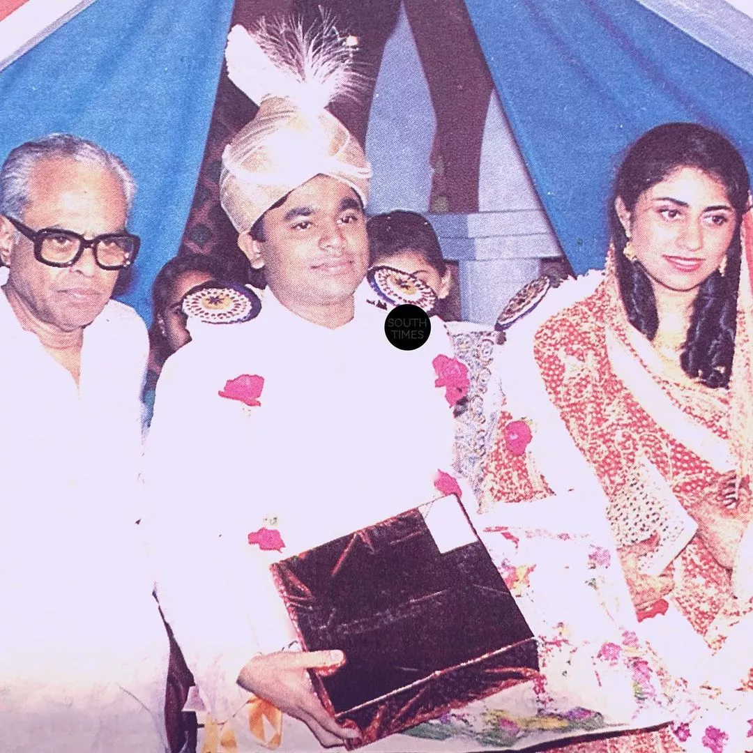 AR Rahman and Saira Banu tied the knot in March 1995. It was an arranged marraige, and the match was fixed by AR Rahman's mother. In the photos, the Oscar-winning singer was seen dressed up in a white sherwani with a golden turban and a kalgi. On the other hand, Saira Banu looked pretty in a red lehenga with a heavy dupatta tucked over her head.