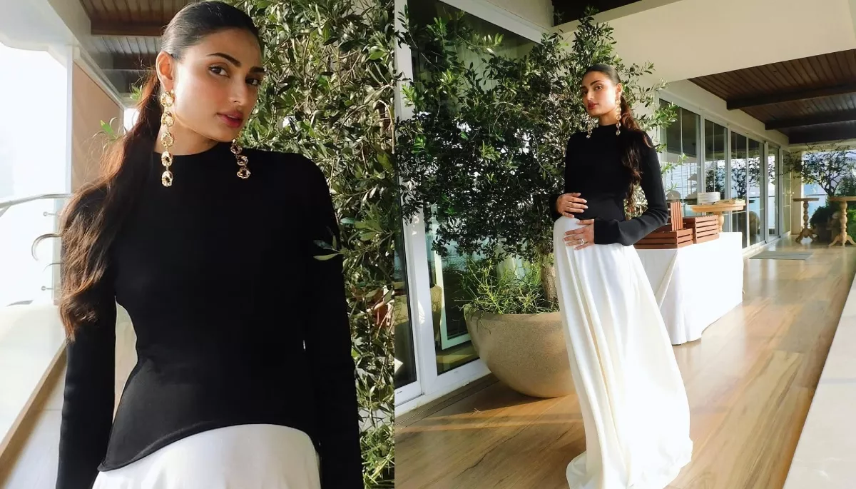 On January 29, 2025, Athiya took to her Instagram handle and posted a couple of pictures from her pregnancy diaries. The mommy-to-be radiated pregnancy glow in a monochrome ensemble. She picked a white flowy skirt with a pair of black turtleneck sweaters. She styled her hair long, curly hair tied in a ponytail.