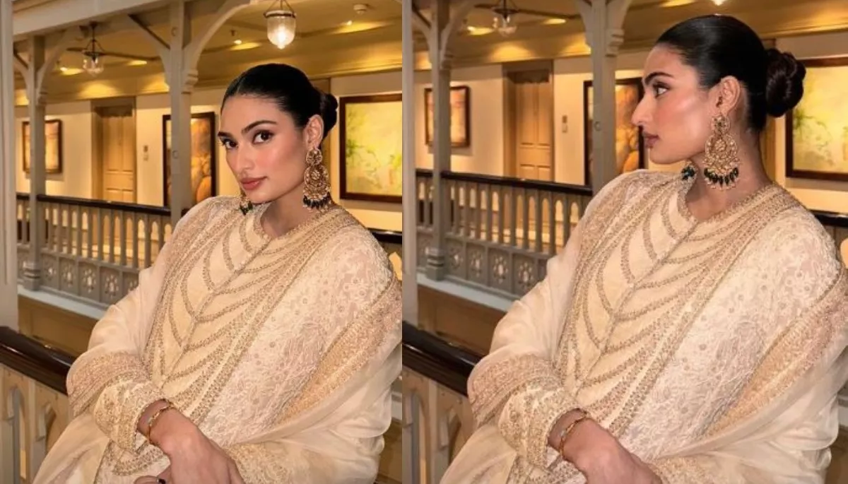 Taking to her IG handle, a while ago, mom-to-be, Athiya Shetty shared a few photos, wherein she looked the prettiest in her ethnic best. The actress donned an off-white toned salwar suit with intricate works all over. The dress came along with a board neck design with embellishments, while the fabric of it was chikankari. Athiya finalised her look with a matching dupatta. A pair of statement earrings added stars to her look. Soft-toned makeup and tied-up hair were enough to amp up her final look. Moreover, it was Athiya's pregnancy glow, which was simply unmissable.