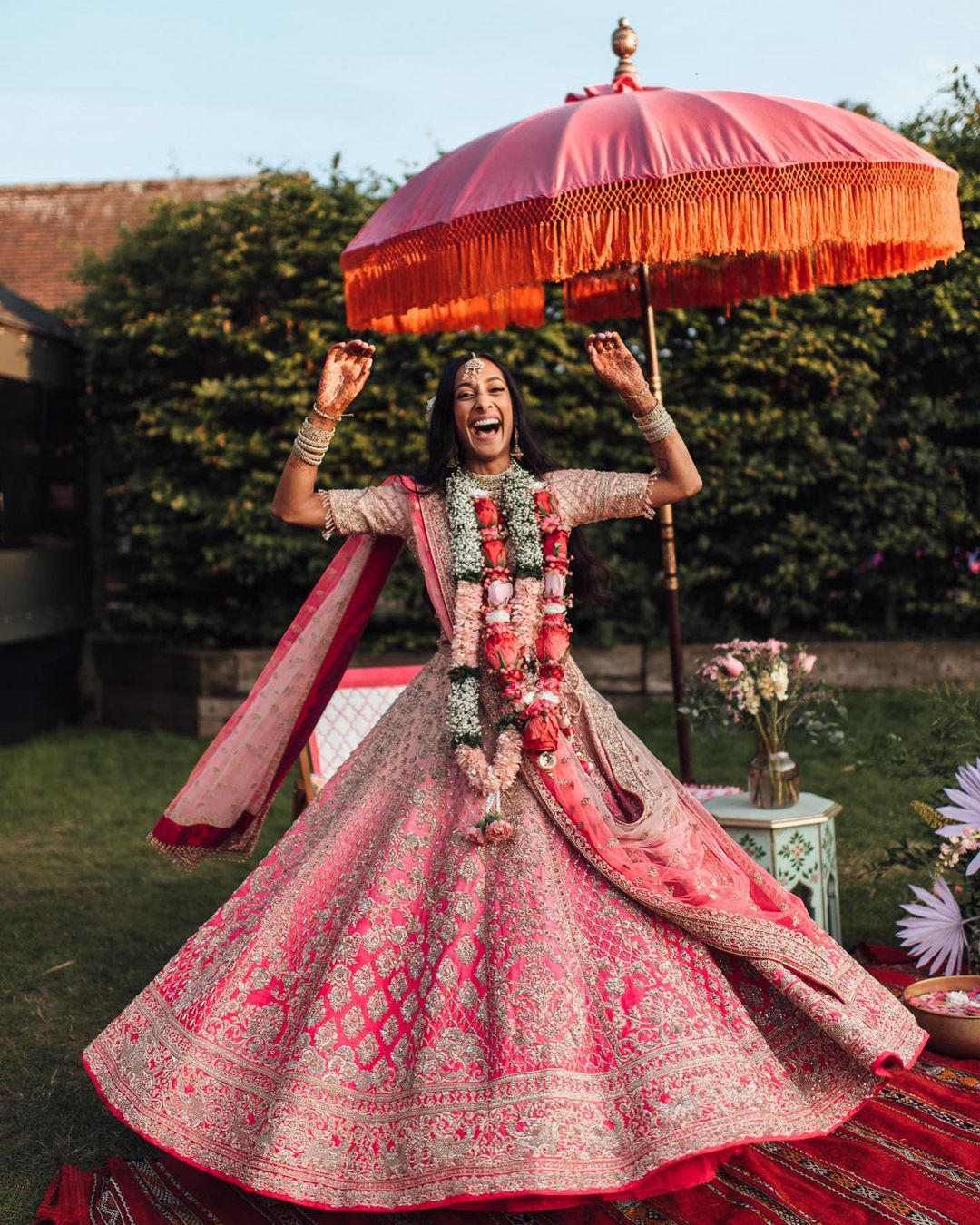 Meet the bride of the week, Zeena Shah, who is an art director, author and television presenter. She had tied the knot with the love of her life, Zack Mclaughlin, a paper artist this summer. The bride had donned a beautiful ombre pink lehenga from Frontier Raas for her big day. Her lehenga had featured golden embroidery and tasselled-sleeves choli.