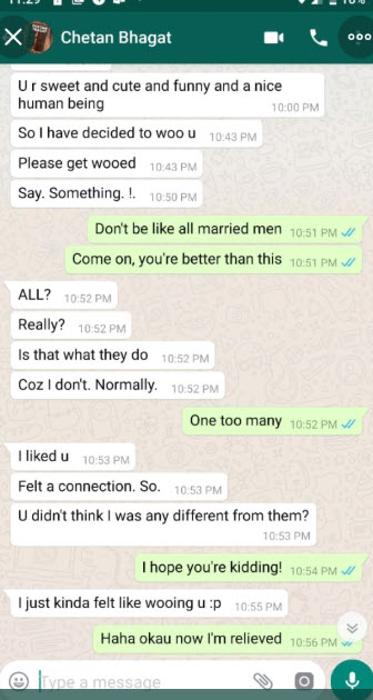 We are talking about one of India’s most famous authors, Chetan Bhagat. So, what happened was that a woman took to Twitter and shared a couple of screenshots of WhatsApp conversation that Mr Bhagat had with her once. As readily pointed out in the tweet, the Half-Girlfriend author knew her only ‘in a professional capacity’. In the conversation, Chetan Bhagat is clearly trying to woo her and finds her ‘cute and funny’. First, take a look at the screenshots: