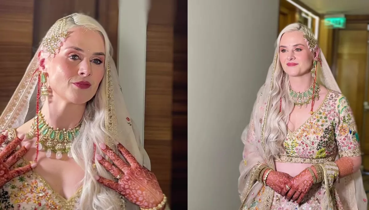 Recently, a bride from Chicago left everyone in awe with her Indian bridal look for her wedding. A doctor from Chicago, Paige Riley recently turned a Kashmiri bride on the most special day of her life. She opted for Rahul Mishra's gorgeous wedding ensemble. Her wedding lehenga was in ivory tone and had multi-hued floral embellishments all over. The skirt also featured the embellishments of a peacock. Paige wore it with a sheen dupatta with colourful embellishments. Well, her Kashmiri bridal look left everyone in awe.