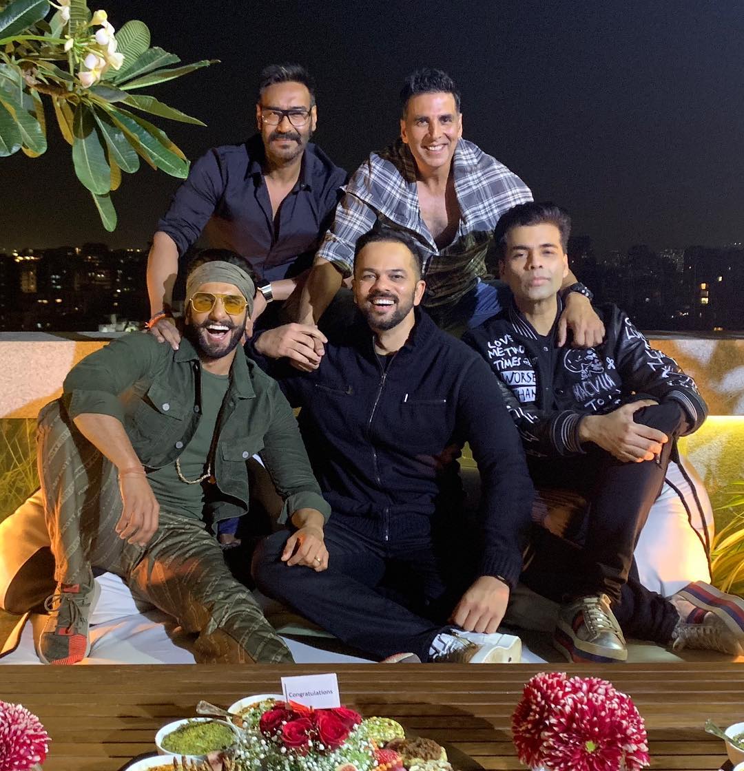 Karan Johar, Rohit Shetty, Ranveer Singh, Ajay Devgn and Akshay Kumar, among other guests, celebrated the success of Simmba last night (January 08, 2019). Karan Johar shared a snap from the bash, all the big names in one frame, and captioned it, "I think I know what you’re talking about @itsrohitshetty," and Rohit Shetty shared the same photo which he worded it as, "Singham Simmba Sooryavanshi...Coming...Should I tell you Something that you don’t know???." Check out the pic here: