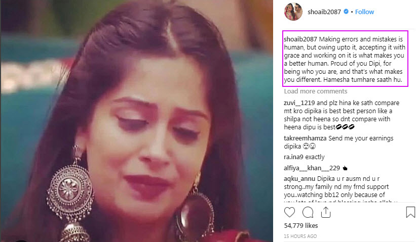 Yes, riding high on the success pillion these days, Dipika’s hubby, Shoaib Ibrahim has always proved everyone that pati ho toh aisa! Ever since Dipika entered the Bigg Boss 12 house, the doting hubby has been posting his views in support of his wife. Remember how, during one of the first captaincy task when Dipika made a mistake, Shoaib instantly took to Instagram and shared a post pertaining to the same and wrote, “Making errors and mistakes is human, but owing upto it, accepting it with grace and working on it is what makes you a better human. Proud of you Dipi, for being who you are, and that’s what makes you different. Hamesha tumhare saath hu.”