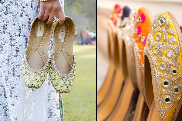 The angel in you will love the beautiful strands of pearls fixed to your footwear. Pearls are also a wedding season must-have and can boost the wow factor of just any fashion ensemble. Colourful pearls are something unique, overwhelming and efflorescent to spark up your style statement. Pearl juttis are also a classy option for the brides who don’t want all that bling and shimmer.