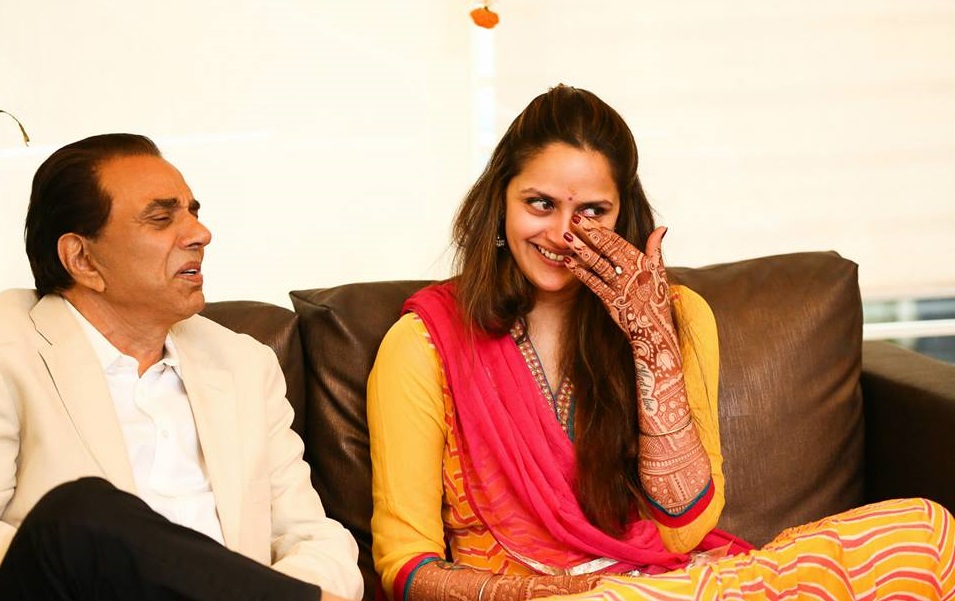 It is not easy to part with the one you love the most. But, seeing his daughter moving towards a new beginning of her life, a father forgets about this pain and gets filled with joy. Here is one such beautiful moment where the proud and happy Bollywood dad, Dharmendra, is simply elated to see his daughter, Ahana Deol during the mehendi ceremony.