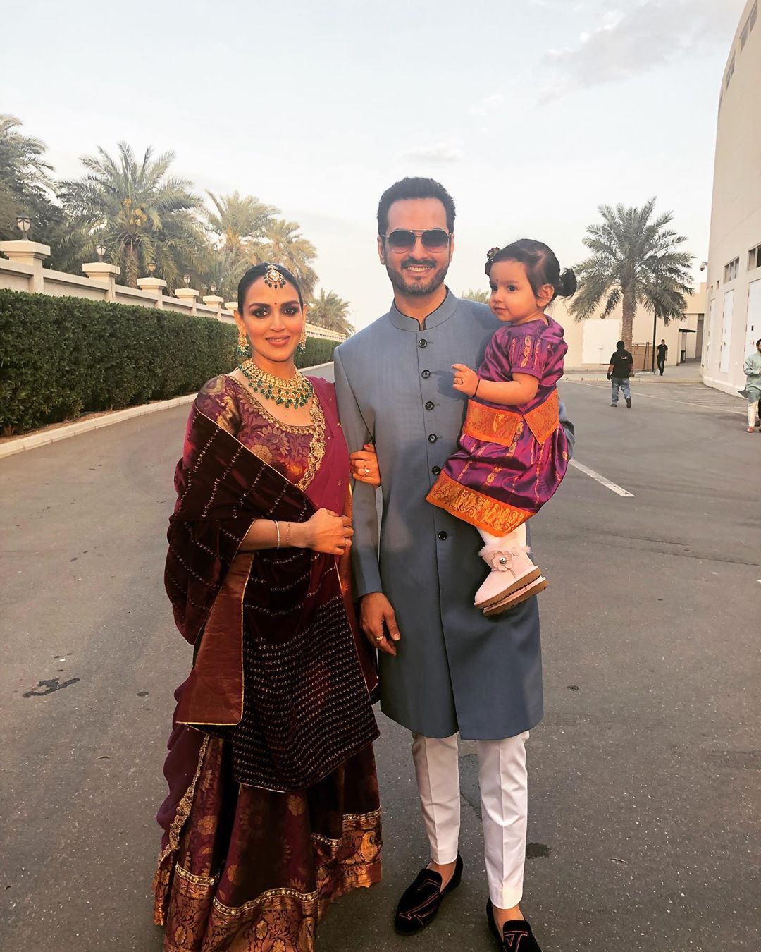 Esha is currently in Bahrain to attend her devar, Aman Takhtani’s wedding. On January 26, 2019, she took to her Instagram handle and shared a new family picture with husband, Bharat Takhtani and daughter, Radhya. She radiated her pregnancy glow in the maroon-hued ensemble while husband, Bharat picked a grey-toned kurta. She captioned the picture as, “#familywedding #coldweather #takhtani #amanforshiv @jewellerybyasthajagwani @bharattakhtani3 in @simplysimone.official #radhyatakhtani in a #southindiandress #babyinuggs. #gratitude.” Take a look at the pictures below: