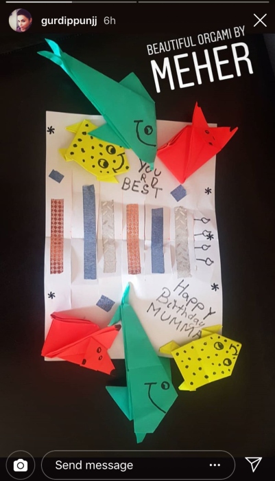 On January 30, 2019, Gurdip turned a year older a year older and daughter, Meher made sure she has the best surprise. The actress took to her Instagram account and shared an adorable story of her daughter’s handmade origami card that reads, ‘Happy birthday, mumma. You are the best’. Take a look at the beautiful picture below:
