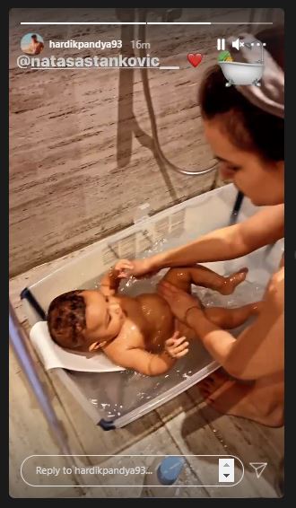 Yesterday, on December 21, 2020, Hardik had shared a glimpse of his baby, Agastya's fun bath session. Taking to his IG stories, Hardik had posted a Boomerang of his wife, Natasa and son, Agastya. In the video, we could see Natasa wearing a black spaghetti top and bathing Agastya, who was lying in his cute bathtub, resting his head and enjoying the water. The daddy had decided to record this endearing moment of his wife and son.