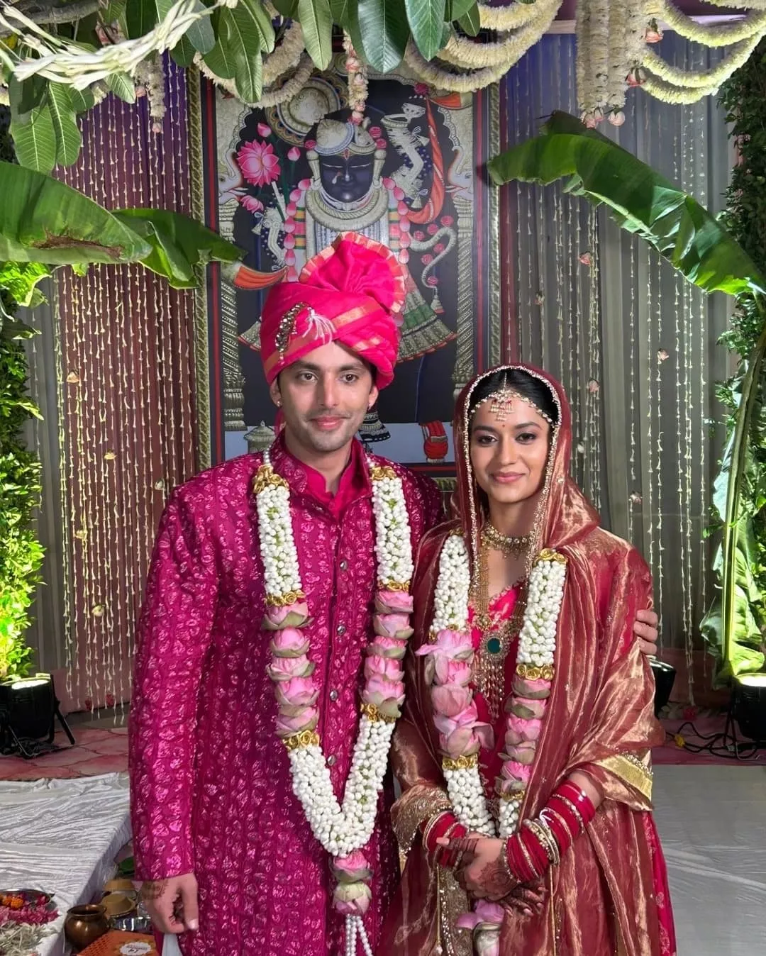 Talking about his bride, her name is still not known in the media, but she looked gorgeous in a rani pink lehenga with a velvety pink-toned dupatta. She kept her look subtle with a dainty neckpiece, mathapatti, and red bangles. Subtle makeup and hair tied at the back completed her look. In one of the photos, we can see Hemansh kissing his wife on her forehead and it was a heartwarming moment.