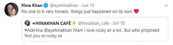 In August 2020, Hina Khan had hosted an 'Ask Me' session on her Twitter handle, wherein she had addressed her fans' questions. Amidst the fleet of questions and admirations, a fan had grabbed the opportunity to ask her about her love story with Rocky. A fan had asked the actress, "Mam I love Rocky sir, but who proposed first, you or Rocky Sir." To which, Hina had given an honest reply and had said, "No one to b very honest.. things just happened on its own." This is what true love looks like when every piece of your puzzle fits in without trying too hard. Now, it seems the couple is ready to take their relationship to next level and we cannot keep calm!