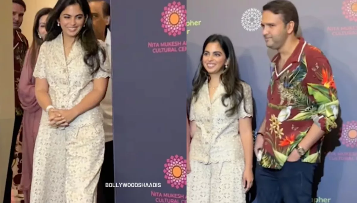 Isha Ambani made a stylish entry with her husband, Anand Piramal during an event at the Nita Mukesh Ambani Cultural Center.