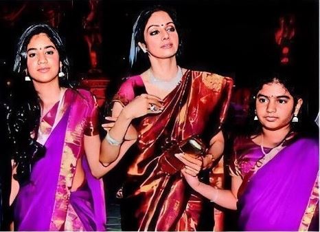 It was not long back, when we had got hold of a throwback picture of Janhvi, Khushi and their late mom, Sridevi, wearing South-Indian sarees. In the picture, we could see Janhvi and Khushi twinning with each other in a purple hued saree, holding their mommy, Sridevi’s hand, who could be seen looking ethereal in a maroon-coloured saree. The Kapoor sisters had looked super cute in the matching attire. While Janhvi and Khushi had teamed similar sort of earrings with their saree look, their mommy, Sridevi could be seen wearing a royal diamond choker necklace. Both, Janhvi and Khushi had held on to their mother tight, while being snapped.
