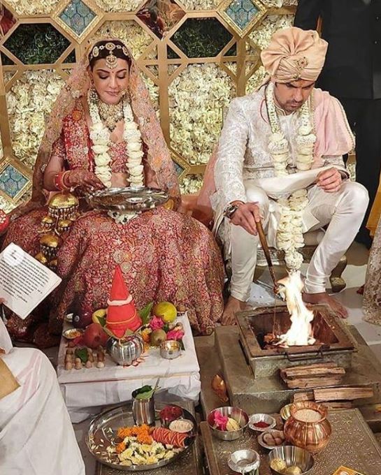 The most special and exciting thing about a celebrity wedding is that we get a lot of fashion ideas and inspirations from their looks in different functions. And their pictures make rounds on social media even days after the wedding. South Indian beauty, Kajal Aggarwal had broken many hearts and had gotten hitched to the businessman, Gautam Kitchlu on October 30, 2020. Kajal's wedding function looks were unique, and she had looked supremely gorgeous in all of them. (Recommended Read: Shilpa Shetty Kundra Observes 'Chalani Rasam' With Hubby, Raj Kundra, Reveals He Also Fasted [Video])