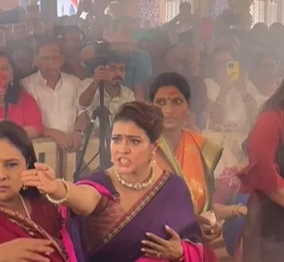 In the latest videos on social media, Kajol is seen getting angry and shouting at a devotee for wearing shoes to the pandal.