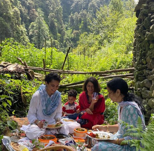We had spotted some pictures of Kangana's family get- together, wherein she and her family could be seen enjoying a traditional meal. Kangana's note alongside the pictures could be read as "My parents are very kind to organise this traditional meal called Dham for me, that's where I grew up nothing has changed, in summers we ate sitting on the floor and slept on the terrace, it was wonderful to be in a joint Family and nice to visit them again - KR."