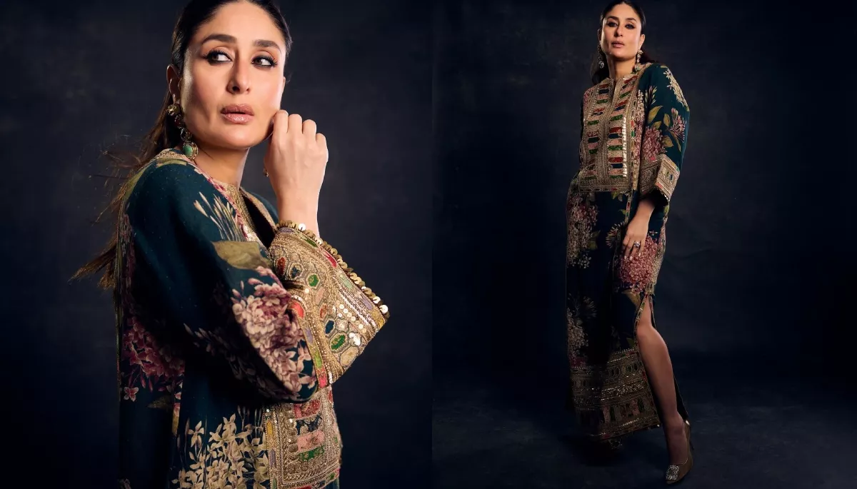 On February 19, 2025, Kareena took to her Instagram handle and posted a couple of pictures of her look as she attended her brother, Aadar Jain's sangeet party. The actress was dressed up in an Indo-western dress with side slits. She kept her makeup subtle, with kohl-filled eyes and hair half-tied at the back.
