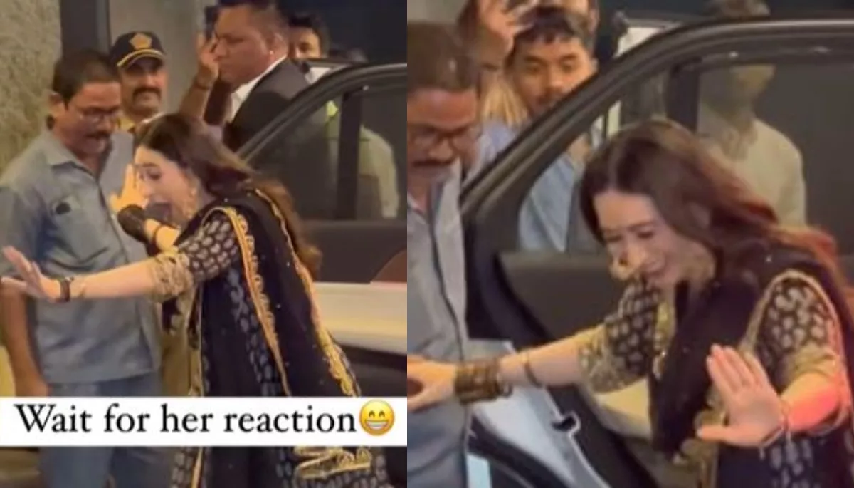 Karisma Kapoor's oops moment at Aadar Jain's 'roka' ceremony. She almost fell and then jokingly asked the paps not to post the video.