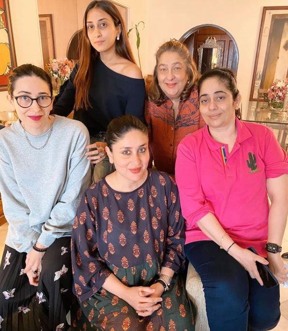 On April 4, 2020, Karisma Kapoor had posted a throwback picture with her grandparents, Raj Kapoor and Krishna Raj Kapoor, her sister, Kareena Kapoor Khan and her cousins, Riddhima Kapoor Sahni and Ranbir Kapoor. Karisma had captioned it, “Family matters. #grandparents #cousins #family #love @kareenakapoorkhan @riddhimakapoorsahniofficial #ranbirkapoor #flashbackfriday." Kareena Kapoor Khan had also reposted the same pictures and had captioned them as "We've discovered the OG posers of the Kapoor family."