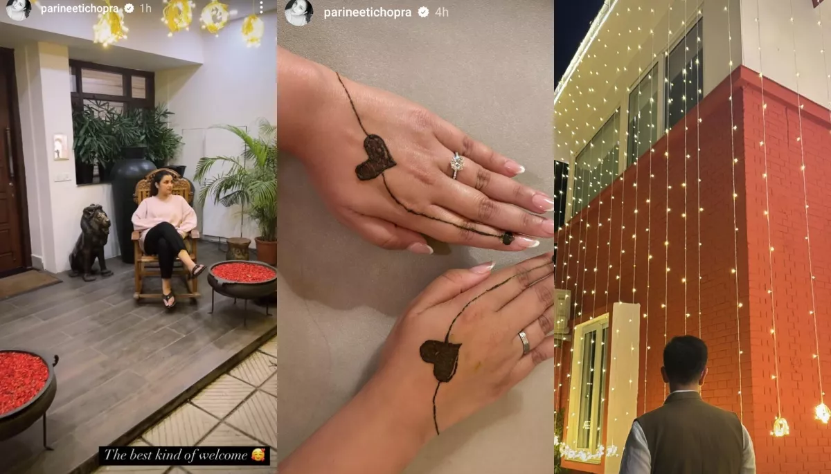Taking to her IG handle, Parineeti Chopra shared a few glimpses from the second Karwa Chauth of hers that she is all set to embark upon. In the glimpses, we could see her minimalistic mehendi design for Karwa Chauth that featured heart shapes and a simple line to highlight the hearts on the back of the actress' hands. Another photo showcased Parineeti's all-lightened-up home for the same festival. In one of the videos, Parineeti was seen sitting on an armchair in her decked-up home. Sharing the clip, the actress wrote, 'The best kind of welcome'. For the unversed, Parineeti recently came to Delhi to celebrate her second Karwa Chauth with her politician husband, Raghav Chadha.