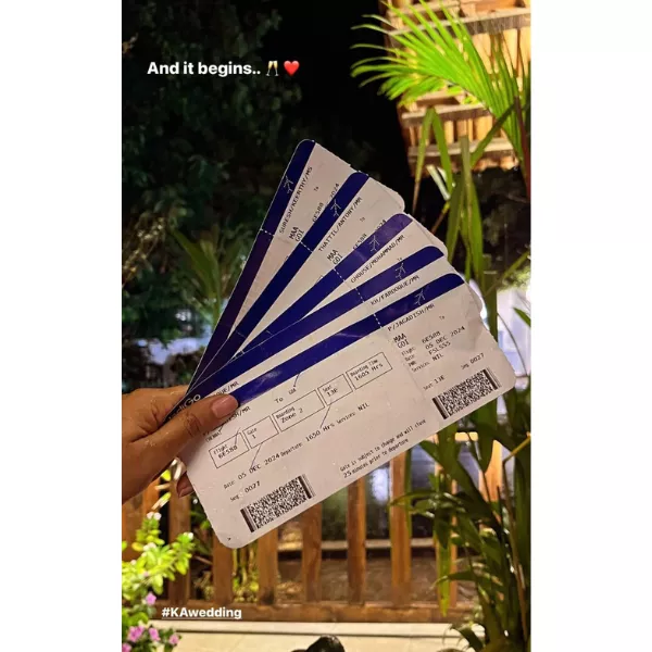 The wedding preparations have already started in Keerthy and Antony's households. The buzz around the couple's marriage had been around on social media for a while. Now, one of Keerthy's buddies shared the photo of plane tickets of Keerthy and Antony and some other buddies of the pair with the hashtag, '#KAwedding.' The actress reshared her buddy's story, with the caption, "And it begins,". The tickets showcased a detailed flight journey from Chennai airport to Goa. Two of the tickets had Keerthy and Antony's names as passengers.