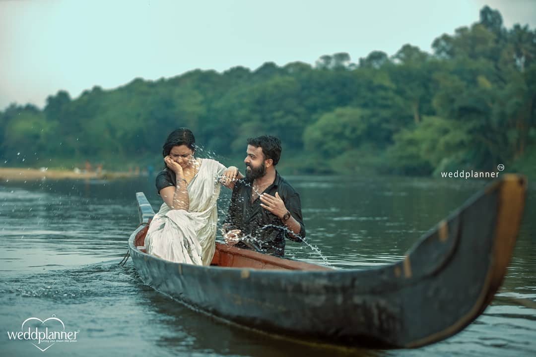 However, a recent photo shoot of a Kerala couple went viral on the social media, and not for the reason you might be thinking. The video shared by Weddplanner Wedding Studio, shows a couple, Tijin Thankachen and Silpa getting ready for their shoot. They were meant to kiss sitting on a canoe, instead, they ended up falling into the river. Check out the funny video inside: