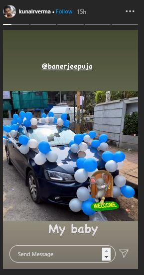 It was after 5 days of their baby boy’s birth that Puja Banerjee and Kunal Verma had welcomed their little wonder to their home. The couple had ensured that their baby gets the grand welcome as he stepped into his home for the first time. Taking to his IG stories, Kunal had shared a glimpse of the welcome they had planned for their little one. In the picture, Puja and Kunal’s car could be seen decorated with blue and white balloons, in which they had gotten their baby home. Kunal had written, “My baby” atop it with ‘welcome’ GIF. Puja had also reposted Kunal’s story on her IG handle.