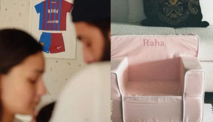 Alia Bhatt and Ranbir Kapoor’s little one, Raha Kapoor is the apple of their eyes, about whom they never cease to talk publicly. While the couple hasn’t revealed the face of their daughter to the world, it is through her parents’ anecdotes that we get a glimpse into the little one’s life. Recently, we got a glimpse of the cutesy princess-like gift which she received from her parents. Raha’s maasi, Shaheen dropped a picture of Raha’s adorable pink-hued couch, that had her name custom-written on it.