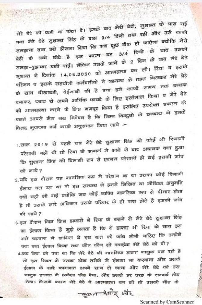After a series of nationwide fan protests and demands of a CBI probe in Sushant Singh Rajput's alleged suicide, his family, who lives in Patna, filed an FIR against his rumoured girlfriend, Rhea Chakraborty. On July 28, 2020, Sushant's father filed FIR and accused Rhea of abetment to suicide, alleging that she cheated him financially and mentally harassed him. A four-member team of Patna Police has already left for Mumbai to probe the case.
