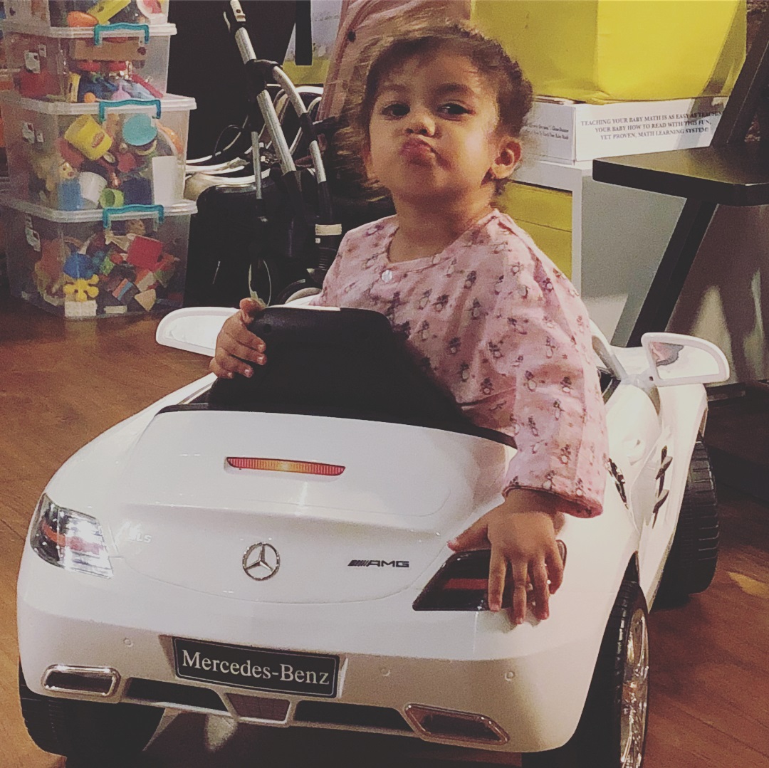 Shahid Kapoor and Mira Rajput Kapoor’s darling daughter, Misha Kapoor is swooning everyone with her priceless and adorable expressions. And from some latest pictures of this tiny tot, we can see that her pout game is stronger than any B-town celebrity. In the latest post shared by Mira on her Instagram, Misha can be seen sitting on her own white Mercedes Benz toy car and pouting like a pro.