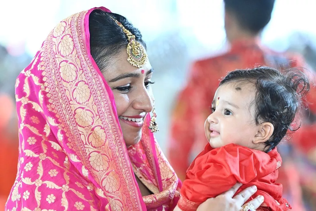 Mohena Kumari Singh revealed her daughter, Gauritaa's adorable face. The little one looked like a 'pari' as she donned a tiny traditional attire.