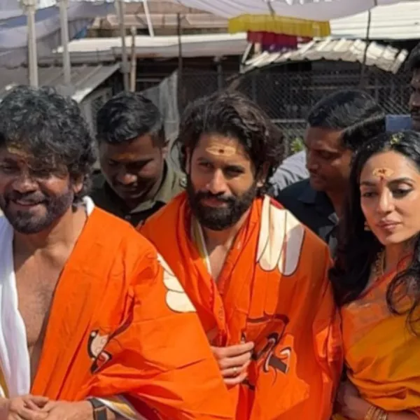 In a video that has gone viral, Chay could be seen clad in a white dhoti and kurta with a golden border. Sobhita wore an orange saree with a red border that looked exquisite. She wore a bindi, a few bangles, and necklaces. Chay's dad and Sobhita's father-in-law, Nagarjuna Akkineni, also accompanied the newly married couple. It looked like they had a divine experience and were blessed as the pictures revealed that the trio was applied tikka by the panditji of the temple.