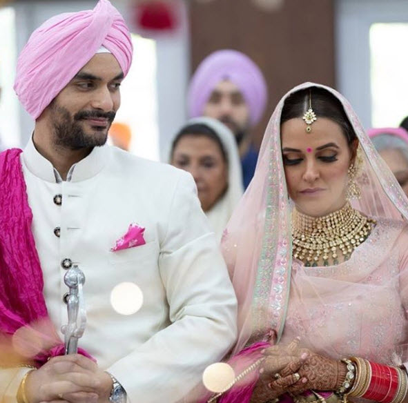 So, Neha and Angad got married in a traditional Gurudwara wedding today (May 10, 2018) in New Delhi and it was an intimate affair. The lovely couple had traditional lawan phere in a Gurudwara, just like Sonam and Anand. Her close friend, Karan Johar shared the happy news of their marriage, with a stunning picture of the ‘Just Married’ couple and a cute caption that read, “The look of love!!! The marriage of eternal happiness!!!! #nehaangad CONGRATULATIONS!!!!!! @nehadhupia @angadbedi.” (Take a look at: Sonam Kapoor-Anand Ahuja's Star-Studded Reception Was High On Style, See Who Wore What At The Party)