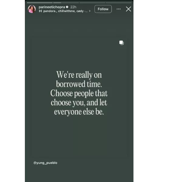 Priyanka is in India with her daughter, Malti Marie and her in-laws for Sidharth's wedding. Reportedly, Parineeti is not able to attend her cousin Sidhharth's wedding functions as she is busy with a shoot. Fans are questioning her absence, and now a cryptic post shared by her added more fuel to the fire amid tensions in the Chopra household. The post shared by Parineeti on Instagram went viral. It read: