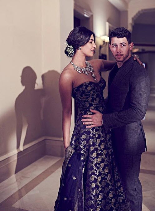Priyanka Chopra and her newbie hubby, Nick Jonas are hosting a grand bash for their friends from the industry. The couple had hosted a wedding reception yesterday (December 19, 2018) for their friends and extended family at the JW Marriott hotel in Mumbai. Donning themselves in Sabyasachi, PeeCee looked gorgeous in a royal blue coloured off-shoulder lehenga which she paired with diamond jewellery and Nick looked dapper in a tuxedo. A mere glance at them and you will be compelled to believe that they make for one of the best couples’ ever! Take a look at one of their pictures:
