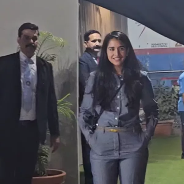 Ambani's choti bahu, Radhika Merchant was seen exiting the annual day 2 event of Dhirubhai Ambani International School. She was seen dressed in a crisp grey shirt, which was tucked in, and wore flared grey-hued jeans. Radhika had donned a semi-formal look and had kept her tresses open. She wore simple flats, kept a small bag with her, and gracefully stopped in front of the paps to pose. She had opted for neutral makeup.
