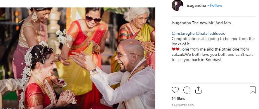For the unintitated ones, it must be mentioned here that Raghu Ram was earlier married to actress, Sugandha Garg. And guess what? Sugandha took to social media and congratulated her ex-husband and his second wife. Sharing the following pic, she wrote, "The new Mr. And Mrs. @instaraghu @nataliediluccio Congratulations..it’s going to be epic from the looks of it. one from me and the other one from zukzuk. We both love you both and can’t wait to see you back in Bombay!" Take a look: