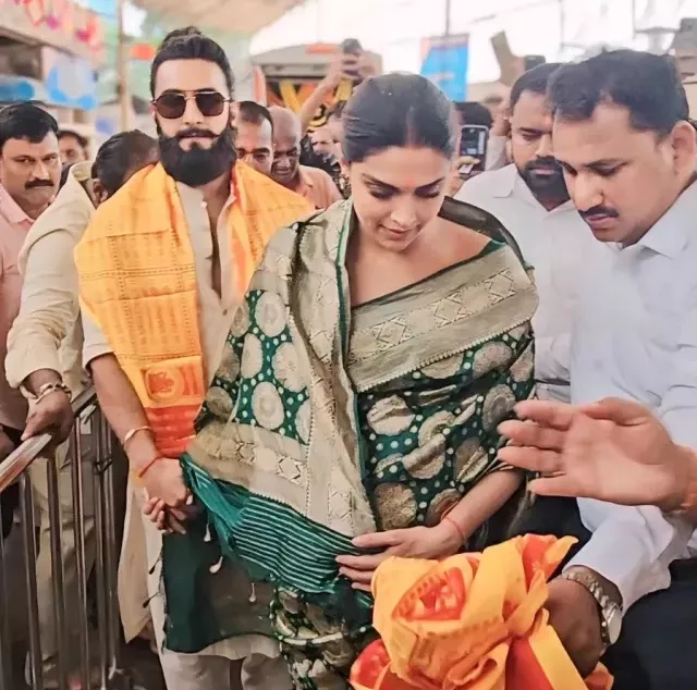 Recently, a video of Deepika Padukone and Ranveer Singh from their recent appearance made rounds on social media. The couple was out to seek blessings on the very first day of Ganesh puja. For the day, Deepika was seen clad in a green-toned Benarasi saree, which she teamed with a matching blouse.