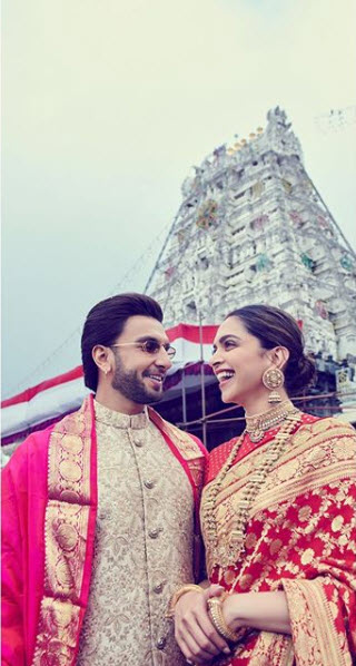 It was on November 14-15, 2018, when Deepika Padukone and Ranveer Singh had gotten married to one another in Italy. A year has passed since the eventful day and we still can’t seem to get over it! For their celebrations, the couple had turned to spirituality and had visited the Tirupati temple on November 14, 2019, and the following day, on November 15, 2019, had visited the Golden Temple in Amritsar, to express their gratitude for the successful completion of one year of their marriage and to take blessings for the onset of their second year of marital bliss. Here is a picture each from both of their celebrations: